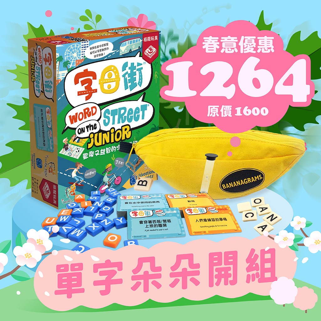 一款風靡全球的拼字遊戲,玩家必須傾倒自己的英文詞庫,將隨機抽取的字母排列成正確的英文單字,無論要直豎還是橫列,就是想辦法讓單字一個接著一個「長」出來!