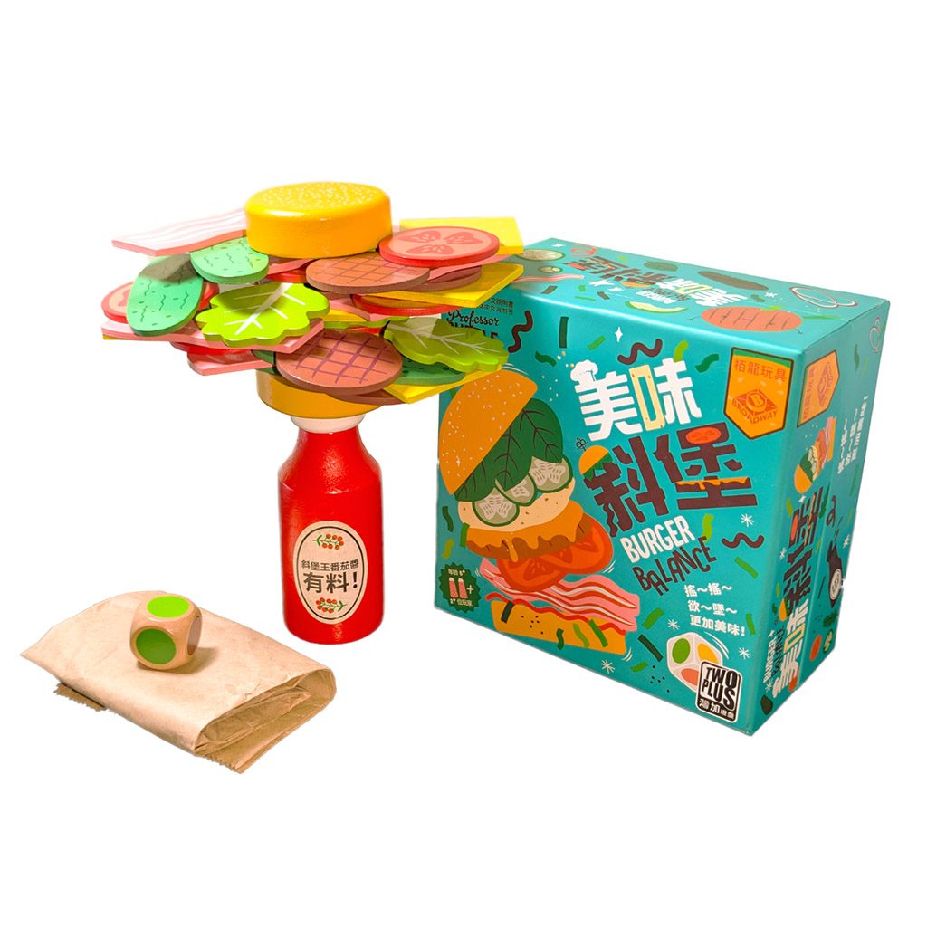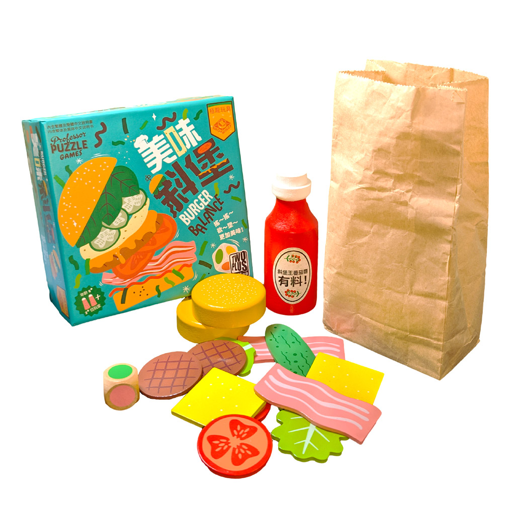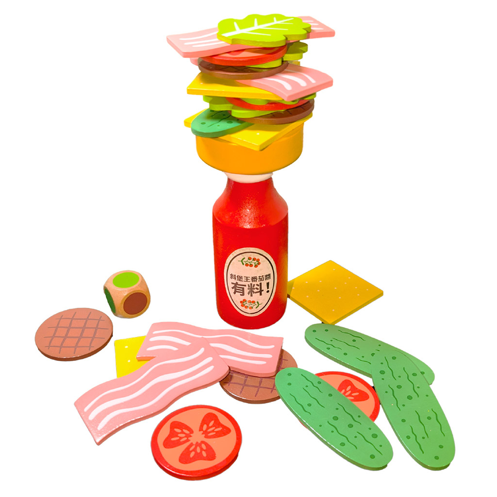- 輪到自己時丟擲骰子,按骰子指示,放上一片漢堡配料。